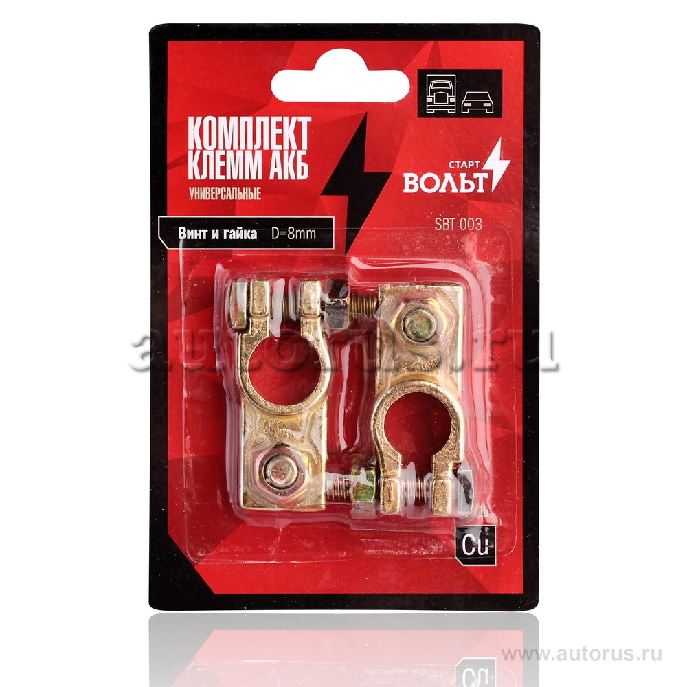 Клемма АКБ СтартВольт медь ,винт и гайка М8 2шт SBT 003